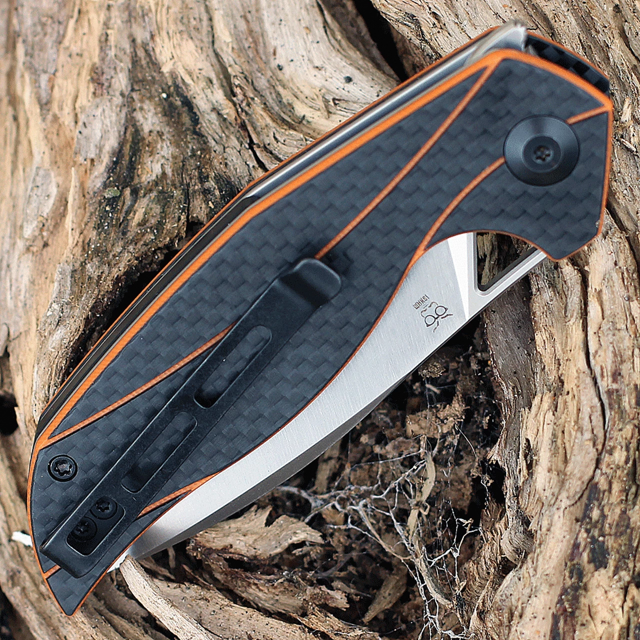 Civivi Anthropos Linerlock C903A, 3.25″ D2 Steel Plain Blade, Orange G-10 w/Carbon Fiber Overlay