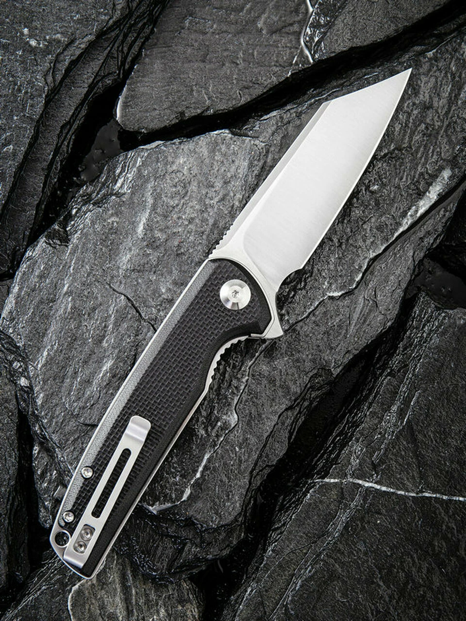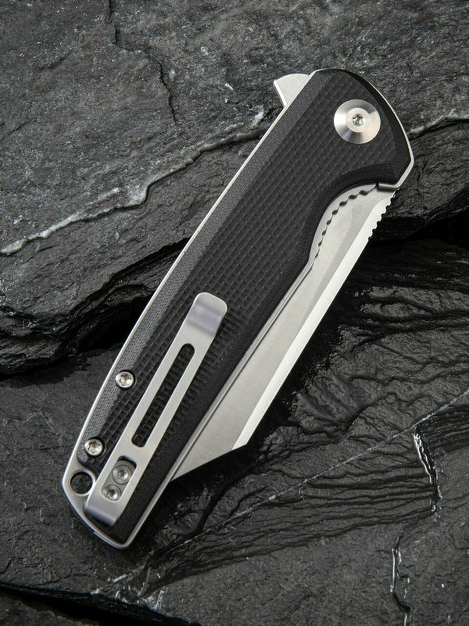 CIVIVI always provides high performance, craftsmanship, innovative designs and great user experience to their partners and customers.The CIVIVI Brigard is most notable for the dramatic Wharncliffe blade, but has some other great features too. This one has a satin finished D2 steel blade, G-10 handle, stainless steel liners, and a pocket clip. This bold knife will make a statement for sure.