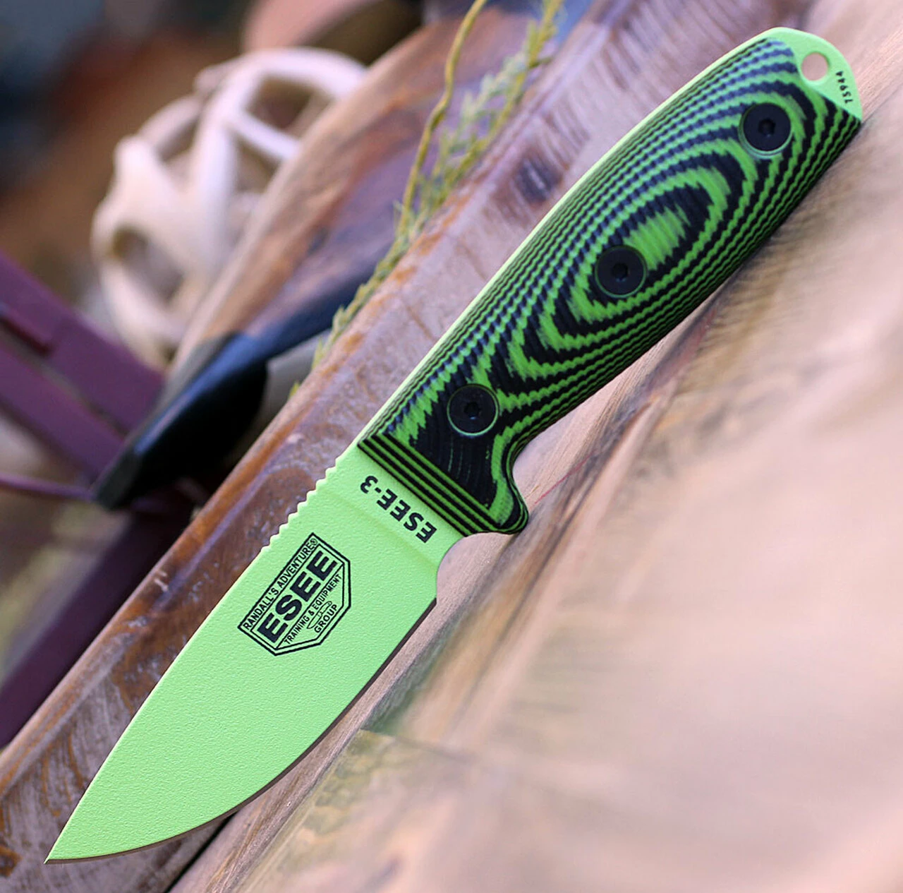 ESEE-3 3PMVG-007, 3.88″ 1095 Carbon Steel Green Plain Blade, Neon Green/Black G10 3D Handle, Black Sheath