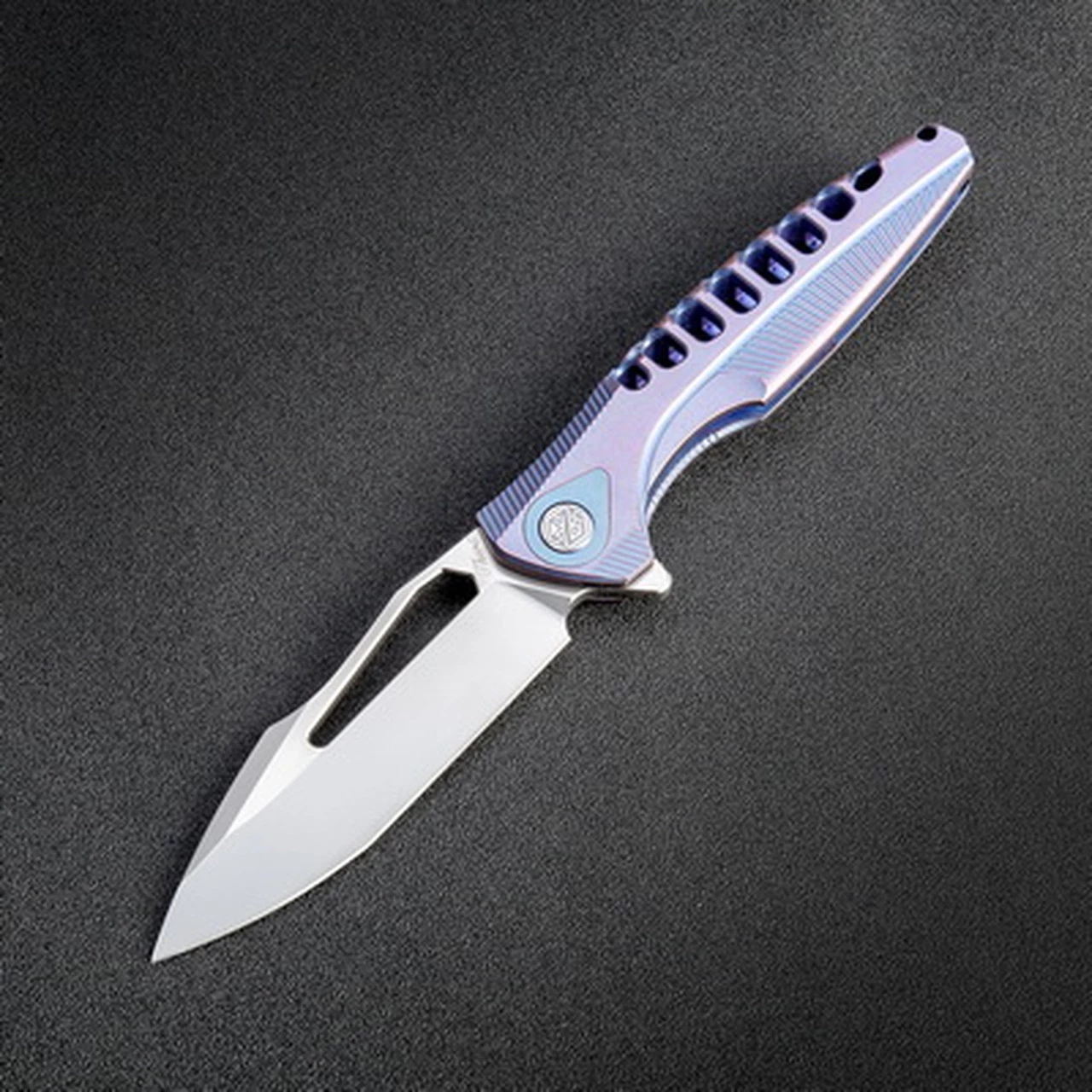 Rike Knife THOR5PB Framelock, 3.75″ M390 Plain Blade, Purple/Blue Titanium Handle