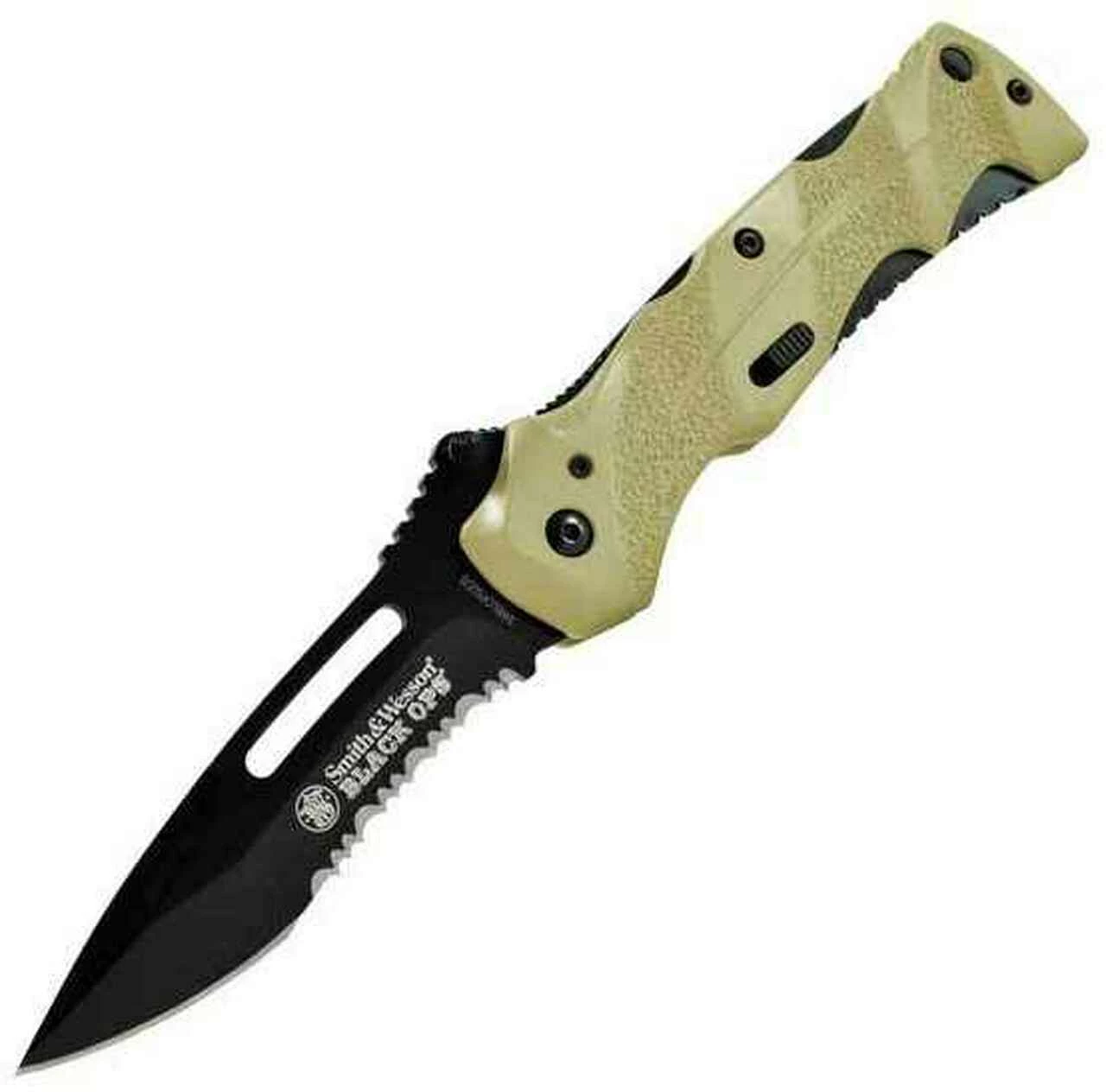 Smith & Wesson Black Ops 2, Desert Aluminum Handle, Black Blade, Combo Edge
