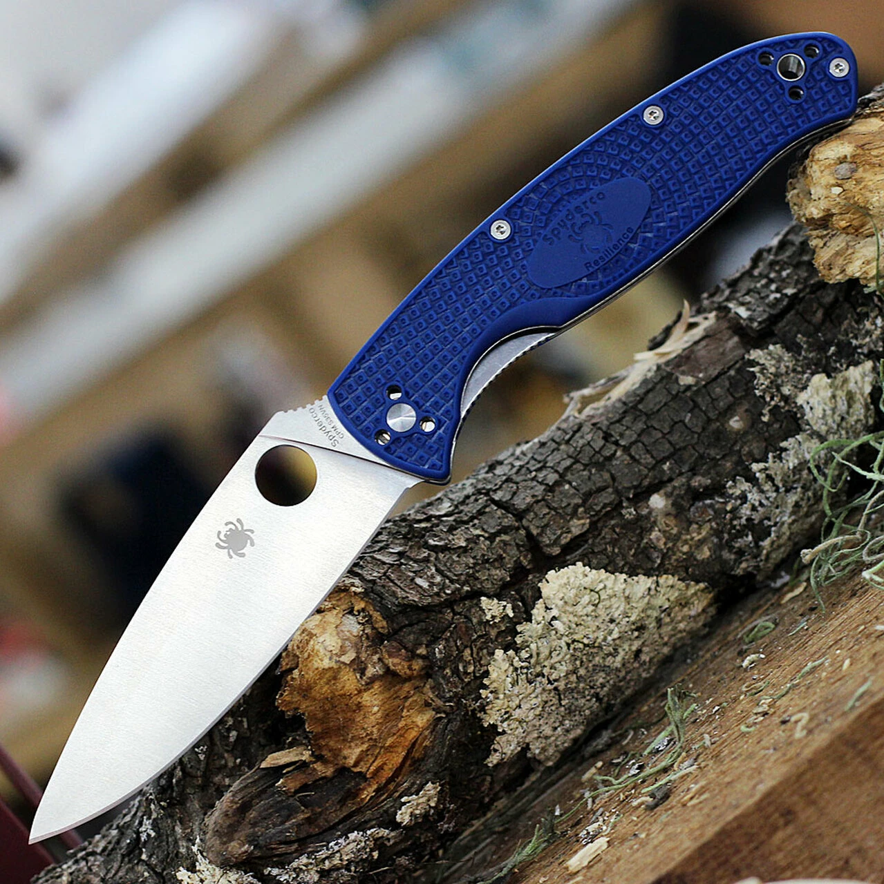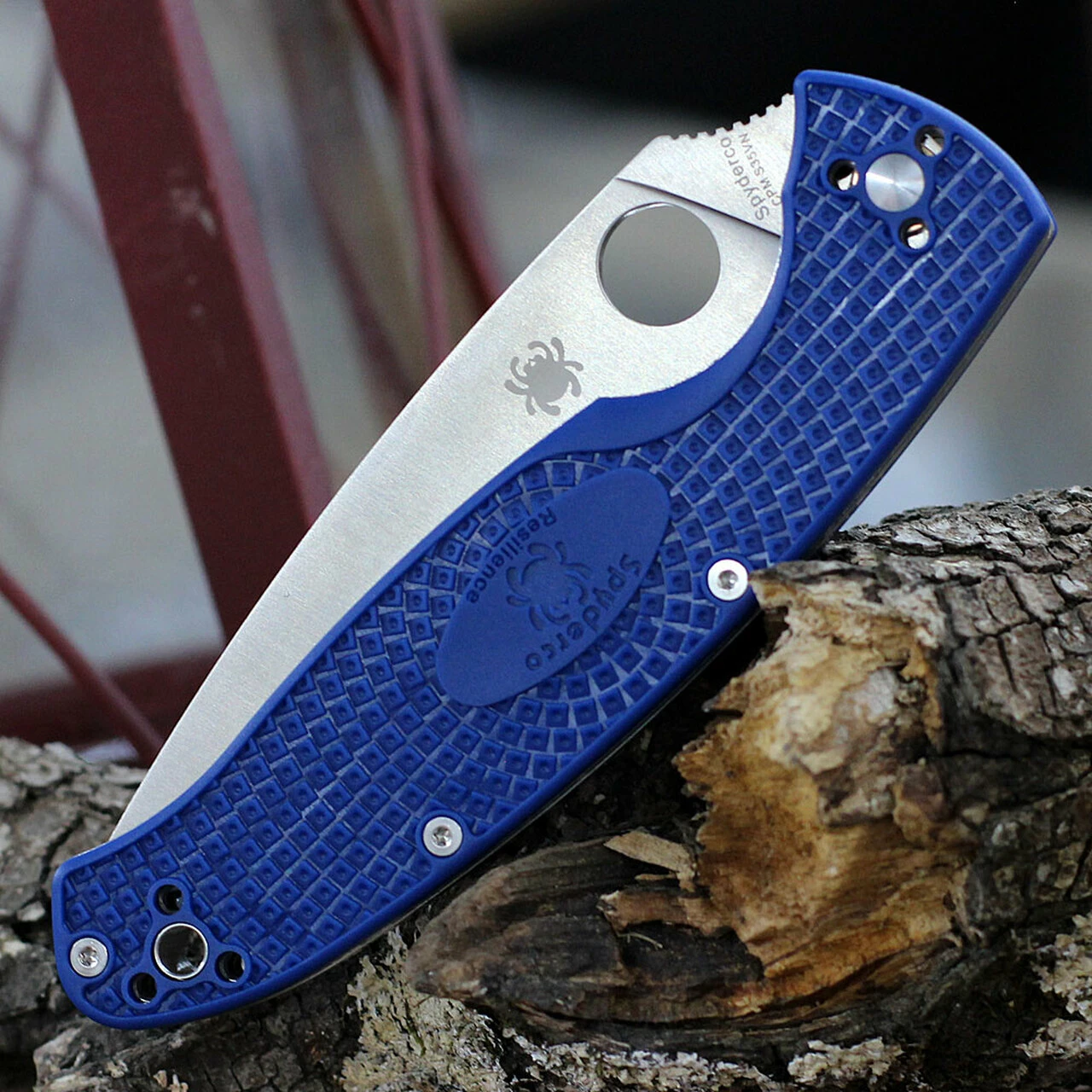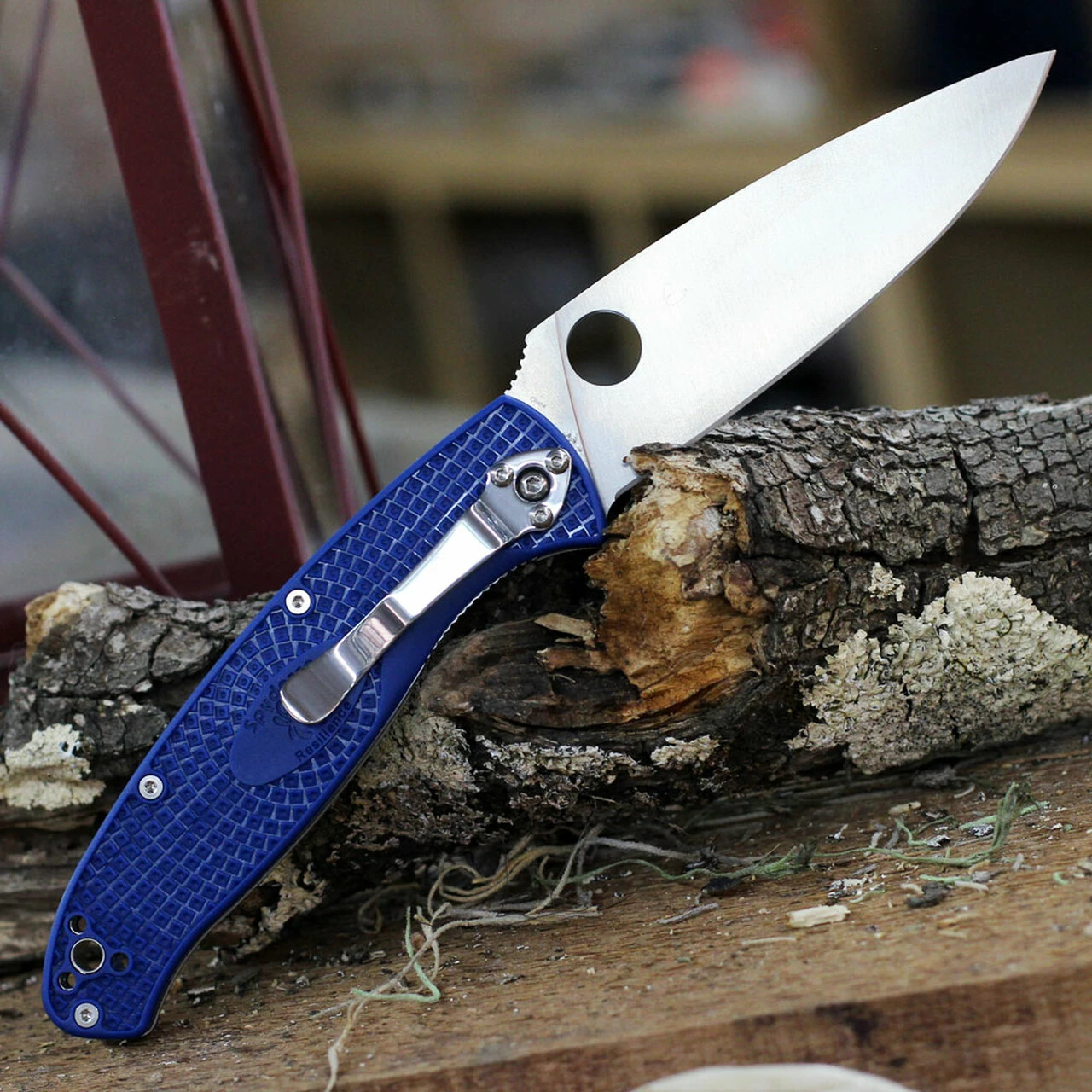 Spyderco Resilience Lightweight Liner Lock (C142PBL) – 4.25″ CPM S35VN Satin Drop Point PlainEdge, Blue FRN Handle