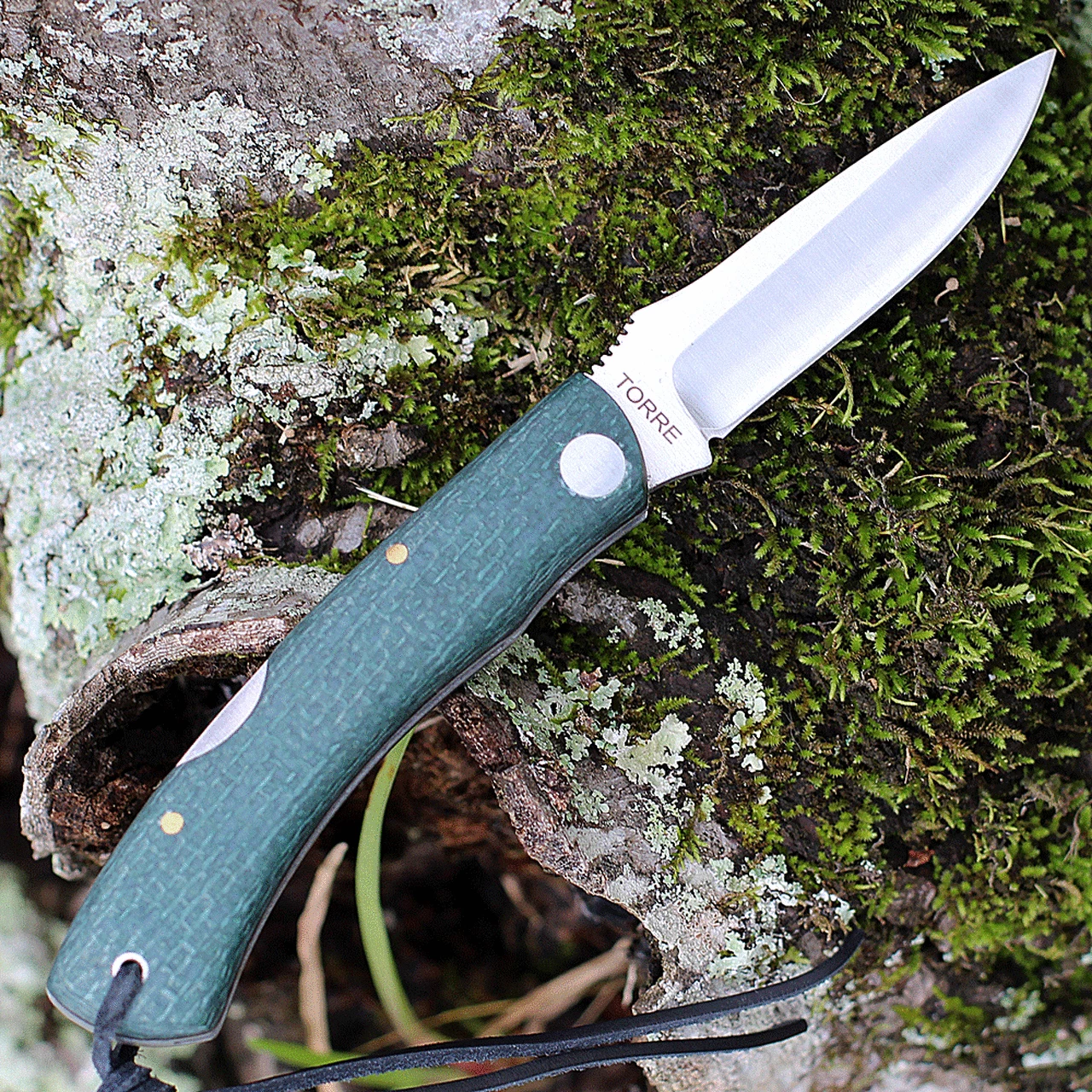 Castillo Knives Torre Lockback Folding, C3JGM, 3″ Sandvik 14C28N Blade, Juniper Green Micarta Handles