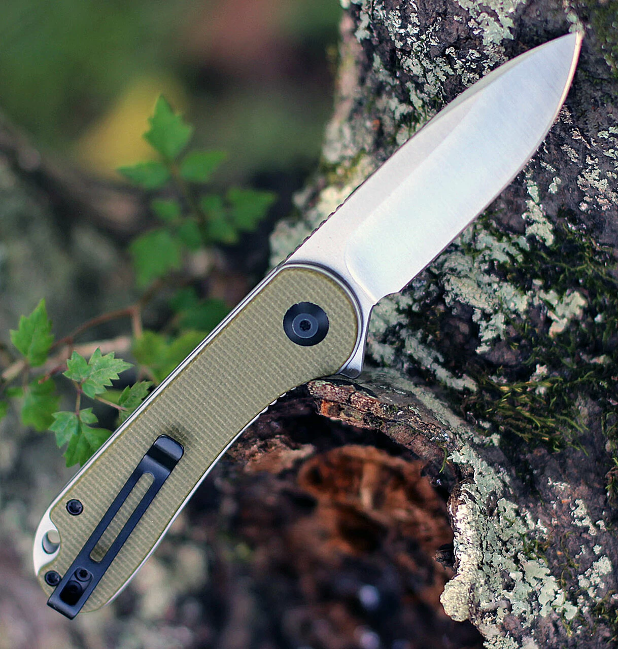 CIVIVI Elementum C907S, 2.96″ D2 Satin Drop Point Blade, Green Micarta Handles