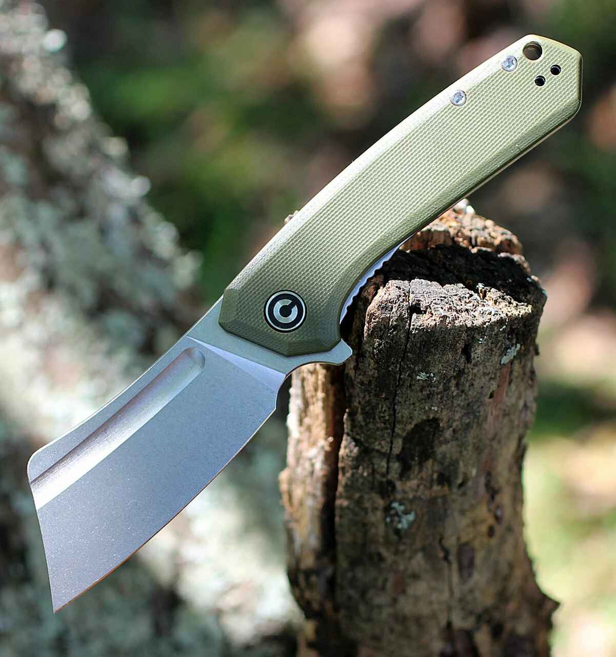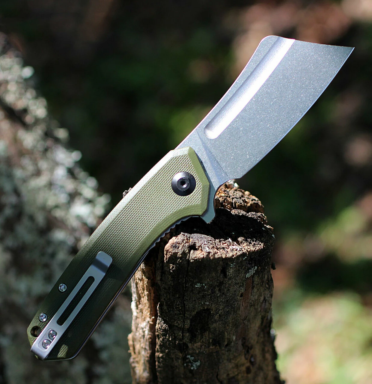 CIVIVI Mini Bullmastiff C2004A, 2.97″ 9Cr18MoV Stonewashed Cleaver Plain Blade, OD Green G-10 Handles