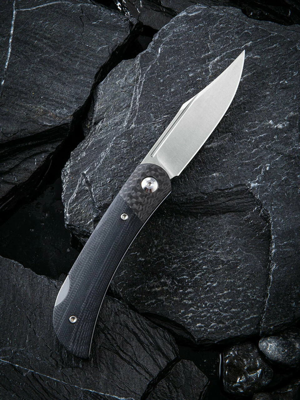 CIVIVI Rustic Gent C914A, 2.97″ D2 Satin Clip Point Blade, Black G-10 Handle w/ Carbon Fiber Bolster