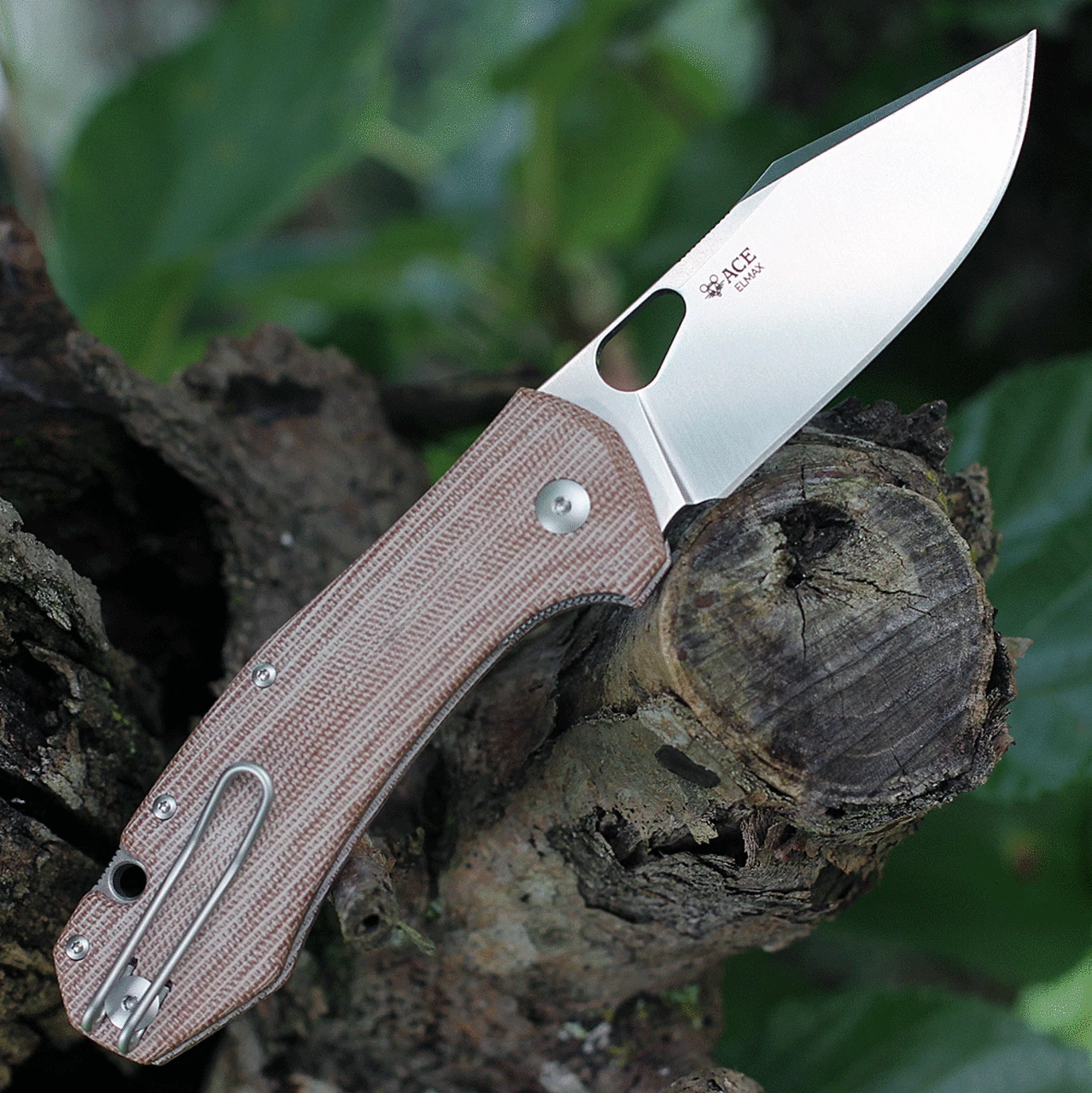 GiantMouse Ace Grand 3.31″ Uddeholm Elmax Stonewashed Blade, Natural Micarta Handle Folder GRAND-NAT-MICARTA