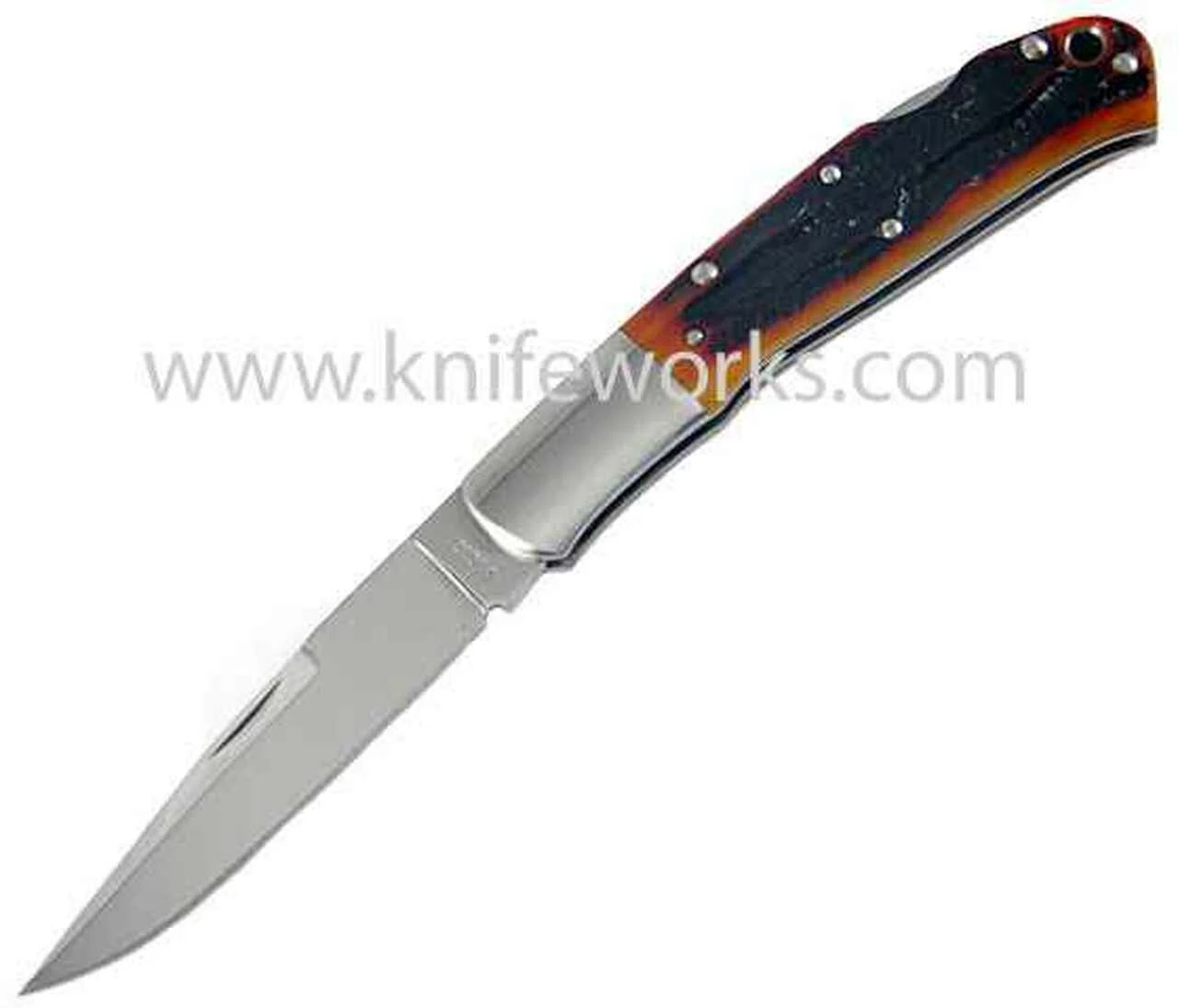 Moki Lockback Amber Bone Stag Handles, Brushed Stainless Blade