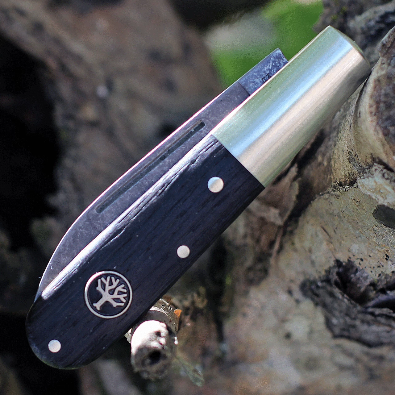 Boker Solingen Oak Tree Barlow 100503, 3.38″ C75 Carbon Steel Polished Plain Blade, Bog Oak Wood Handles