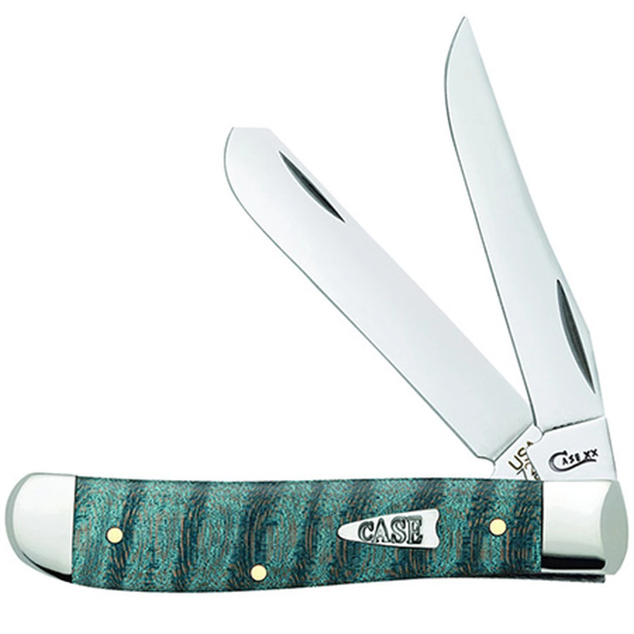 CASE MINI TRAPPER 23366, 3 1/2″ CLOSE D LENGTH SS BLADE, SMOOTH TURQUOISE CURLY MAPLE HANDLE