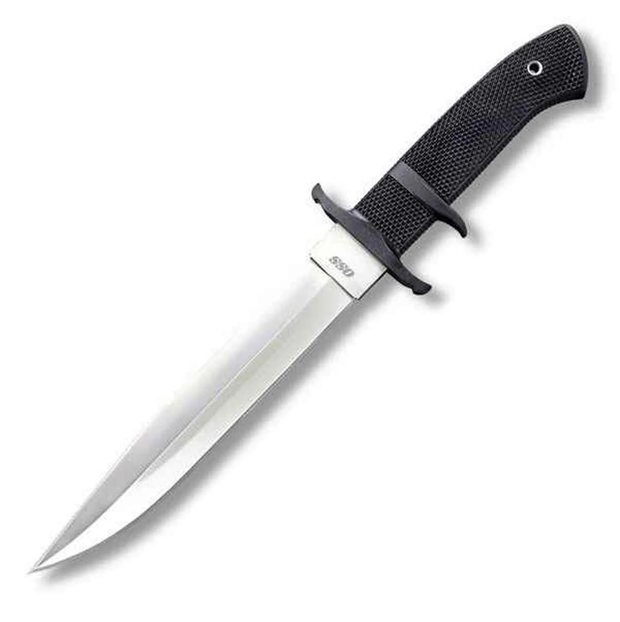 The Cold Steel OSS sub-hilt fighter offers all the advantages and performance of a custom knife at a fraction of the price. For the ultimate grip the handle, guard, and sub-hilt are injection molded in one integral piece of Kraton. This manufacturing method makes the OSS more affordable while delivering the durability, security, and control in the hand that the sub-hilt fighter is famous for.