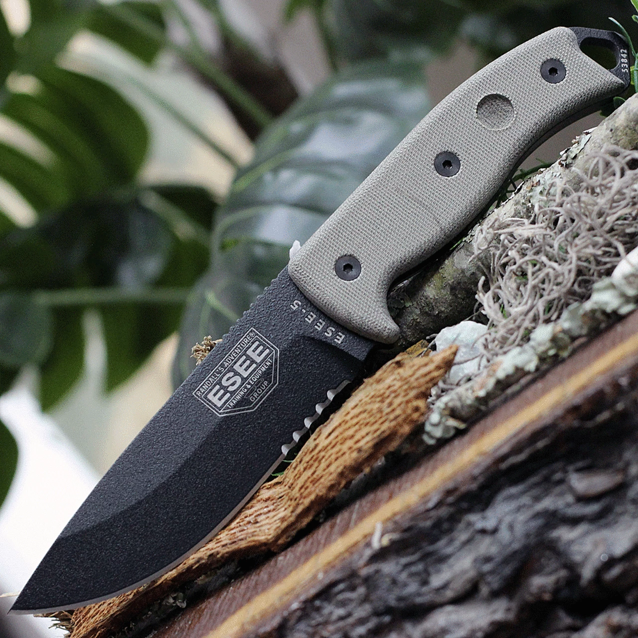 ESEE Knives, 5S-KO, Black Blade, Partially Serrated Edge, Micarta Handle, Knife Only, No Sheathing