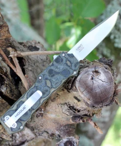 The Deka folder features G10 handles with a variety of attractive patterns. The knife comes with modified Wharncliffe and clip point variations to fit your needs and tastes. The ambidextrous blade is easy to deploy thanks to the included thumstuds. The knife comes with the ABLE-Lock system that secures the knife while open or closed. This version has the clip point blade with a stonewashed finish and G-Mascus Blue Lava coloring on the G10 handles.