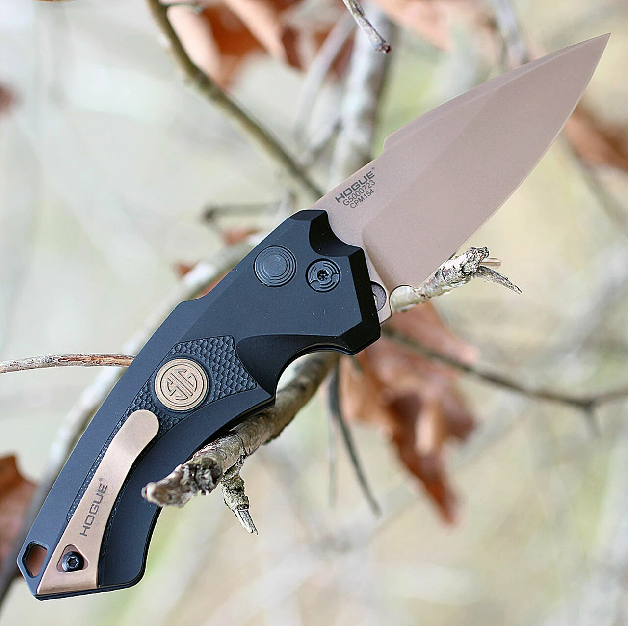 Hogue Sig Sauer 36530 EX-A05 Emperor Scorpion, 3.5″ CPM154 Spear Point Plain Blade, Black Aluminum/Black G-10 Handle