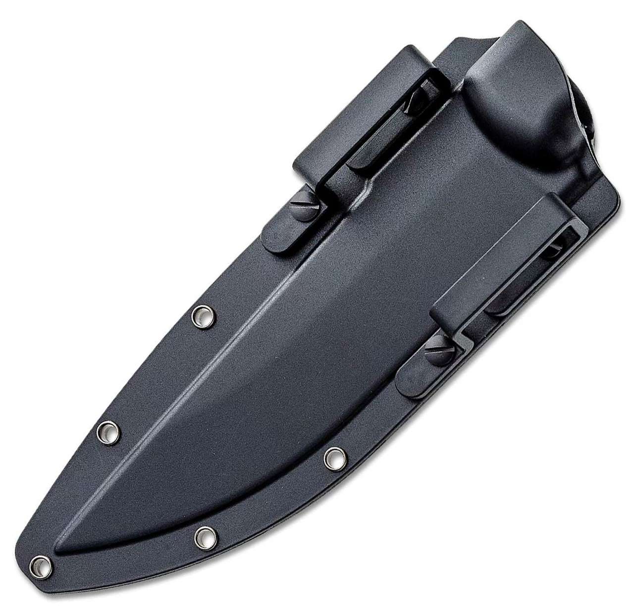 - Black hard plastic sheath MOLLE compatible with integrated belt loops