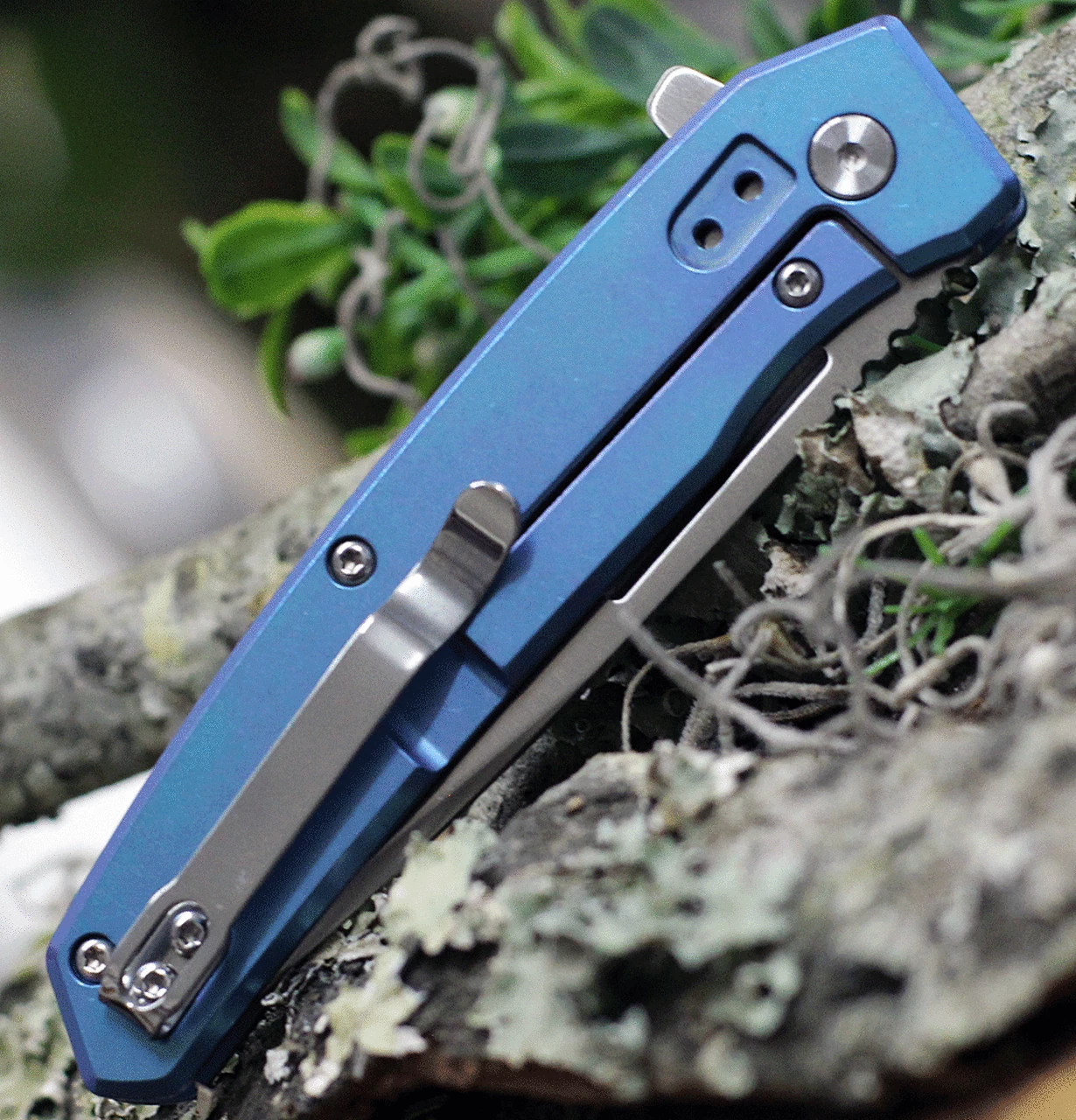 Ti-22 is Titanium, and Titanium means strength. With a handle and frame lock completely constructed of a high-grade material like Titanium, you can trust that the Ultrablue will be as dependable as it is colorful. With an iridescent oxidation, the handle’s color shifts from a deeper blue to a purple similar to an Ultraviolet hence the name Ultrablue.