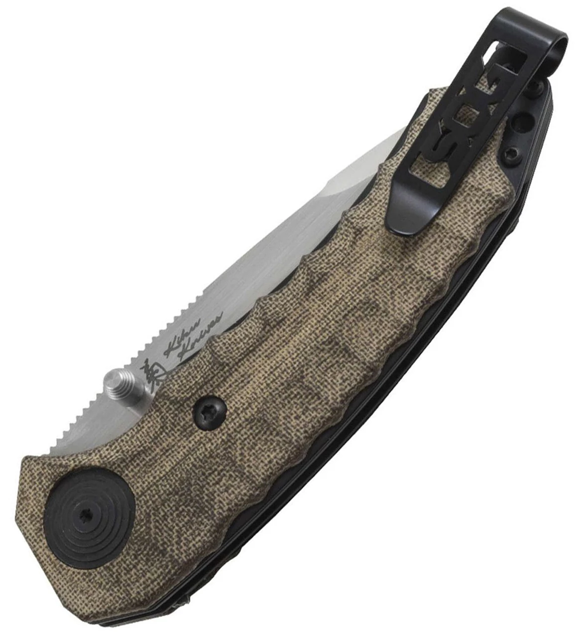 Using premium steel (S35VN) and handle material (linen Micarta), the Kiku Folder makes a statement of class and confidence. A linen Micarta handle is really a treat to hold. It feels great, it offers outstanding grip and it ages gracefully. The Kiku Assisted is a sophisticated and stylish folder for the woods or for downtown. SOG Assisted Technology (SAT) works through the balance of opposing high-tension coil springs. As you initiate the opening action, the force propelling your blade open becomes greater than the force keeping it closed. The result is a blade that springs open instantly once it is engaged, seemingly on its own.
