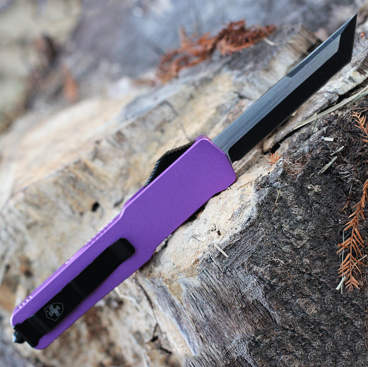 Templar Knife Premium Lightweight Series – Slim OTF Automatic (MA-AP-22-1) – 3″ Powder D2 Black SW Tanto, Aluminum Purple Handle